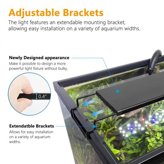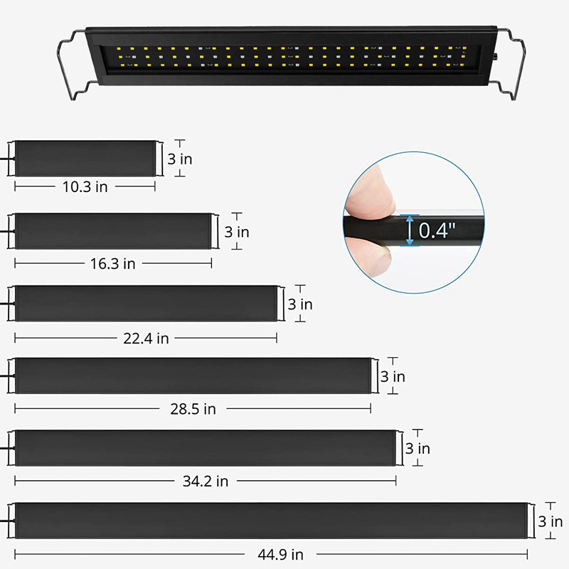 Our Led fish tank light is IP65 waterproof with Aluminum alloyed. Different length options. This Led aquarium light can be safely mounted directly above the water surface for a greater light penetration.