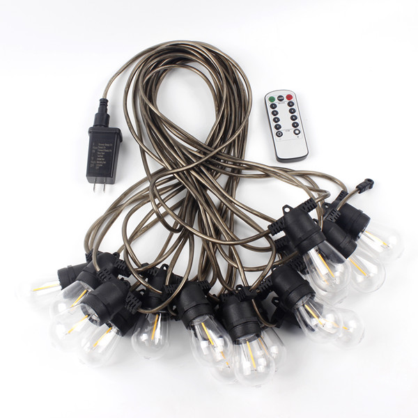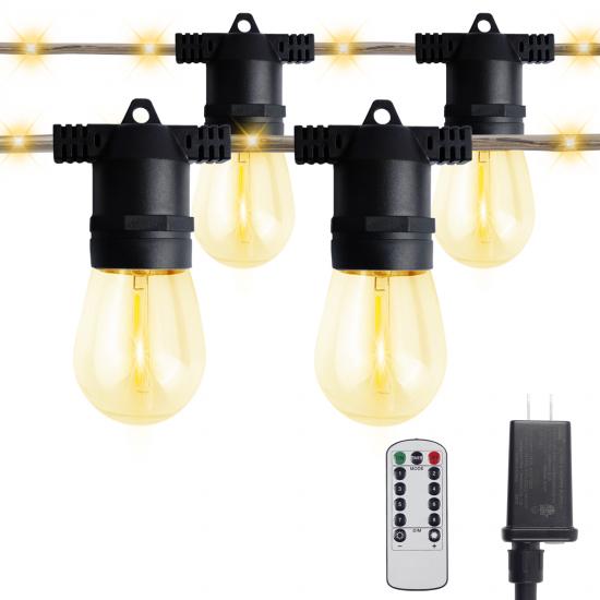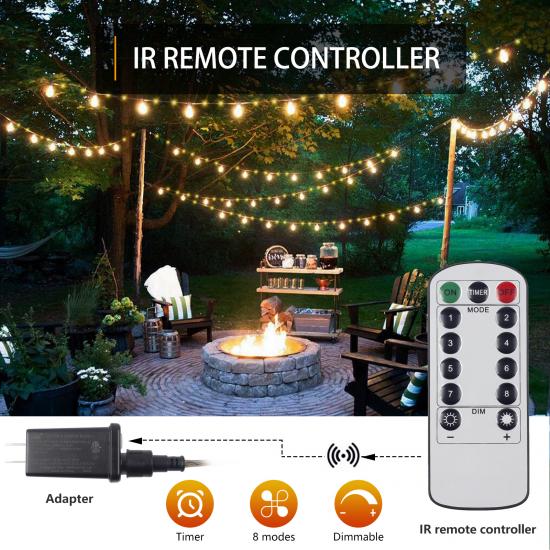 This is outdoor string light S14 and rope fairy light 2-in 1. It is unique patented design. It is waterproof and shatterproof safe low voltage string light. Can be controlled by remote. Support time setting, 8 modes dimming,time setting, switching on/off. It is perfect to decorate your backyard, patio, garden, bistro, porch, balcony etc.