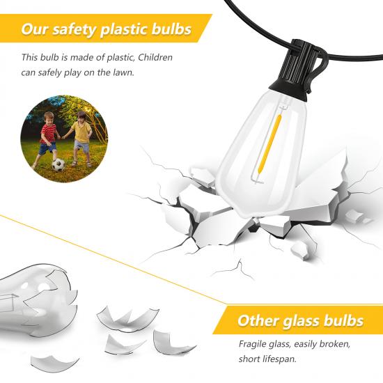 Commercial grade IP44 waterproof string lights with shatterproof ST38 Bulbs